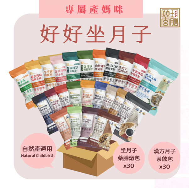 內含30個草本茶包和30個藥膳燉包,總共60包,坐月子和日常保養都能喝~
