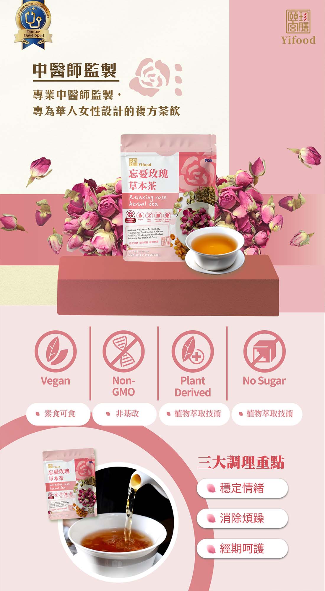 ■ 產品成份:玫瑰、玉竹、桂圓、丹蔘、甜珠草、無花果(Rose, Polygonatum odorata, Longan, Ginseng, Sweetpea, Fig)
