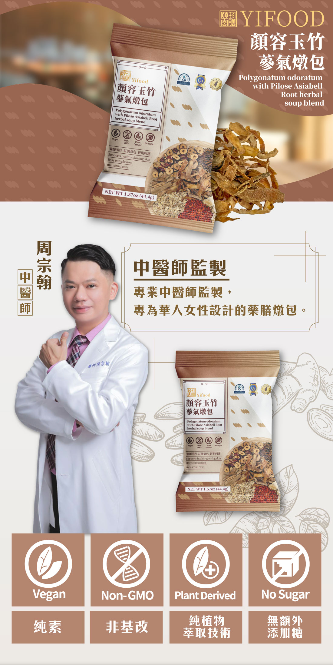 顏容玉竹蔘氣燉包Polygonatum odoratum with Pilose Asiabell Root herbal soup blend