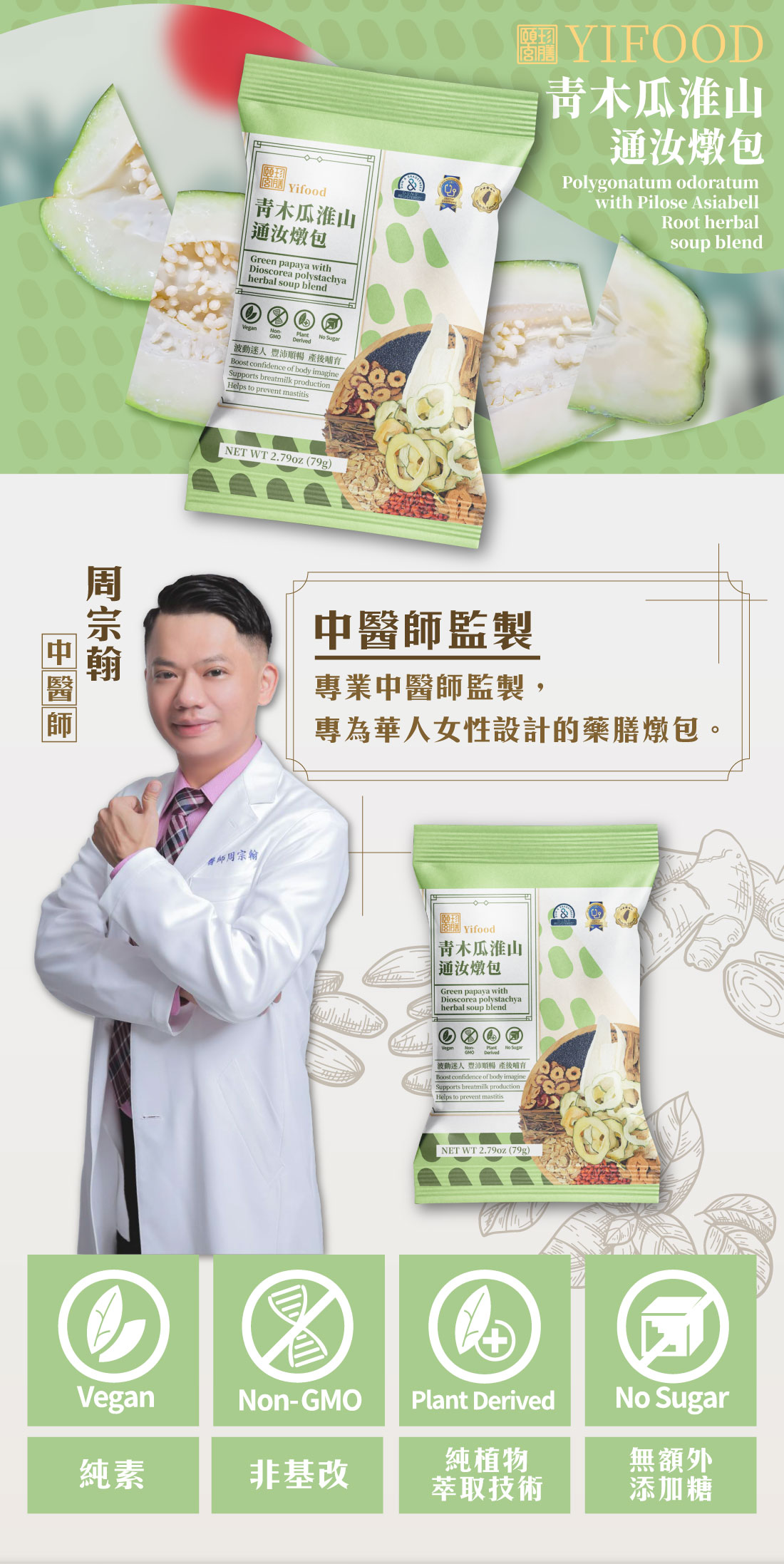 青木瓜淮山通汝燉包Green papaya with Dioscorea polystachya herbal soup blend